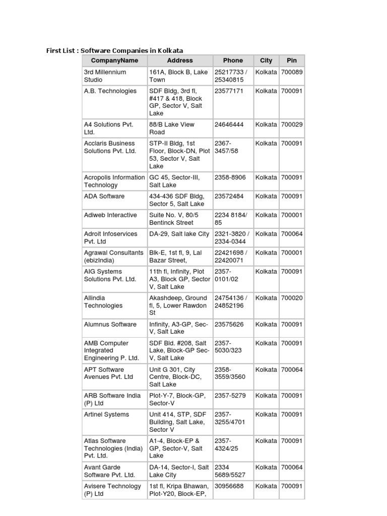 Kolkata It Companies List